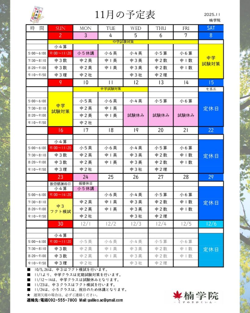 ・11/1(土)より中学生クラスは定期試験対策を行います。